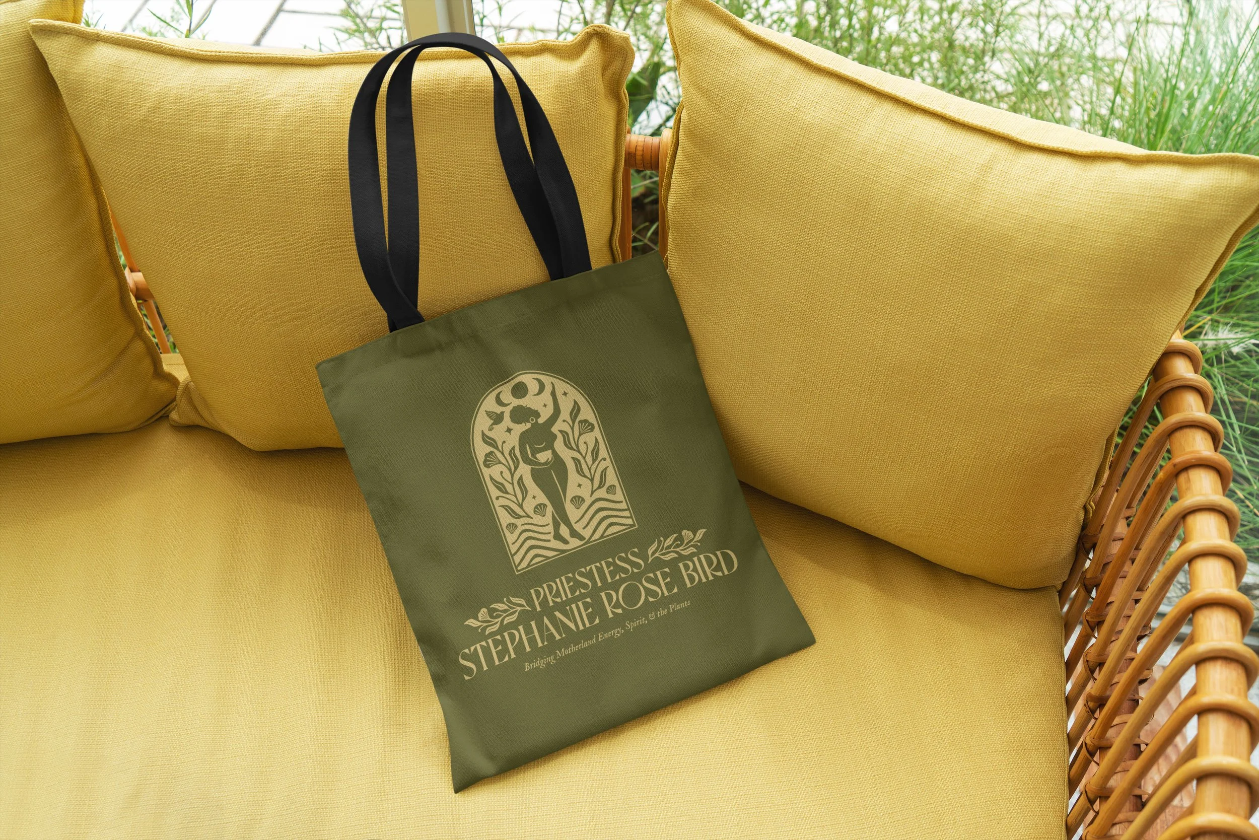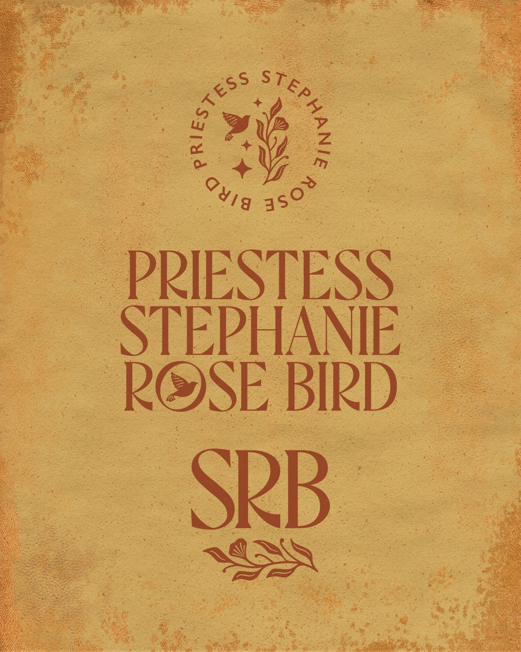 The brand had to embody Stephanie’s magick, while feeling warm, earthy, and artistic. One way of doing this was by making sure the branding had an artful illustrative logo suite. The Priestess is the focus in this folk-art inspired illustration.